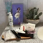Επιπλέον, υπάρχουν στεγνωτήρας μαλλιών, μπουρνούζια και σκουφάκια μπάνιου.
